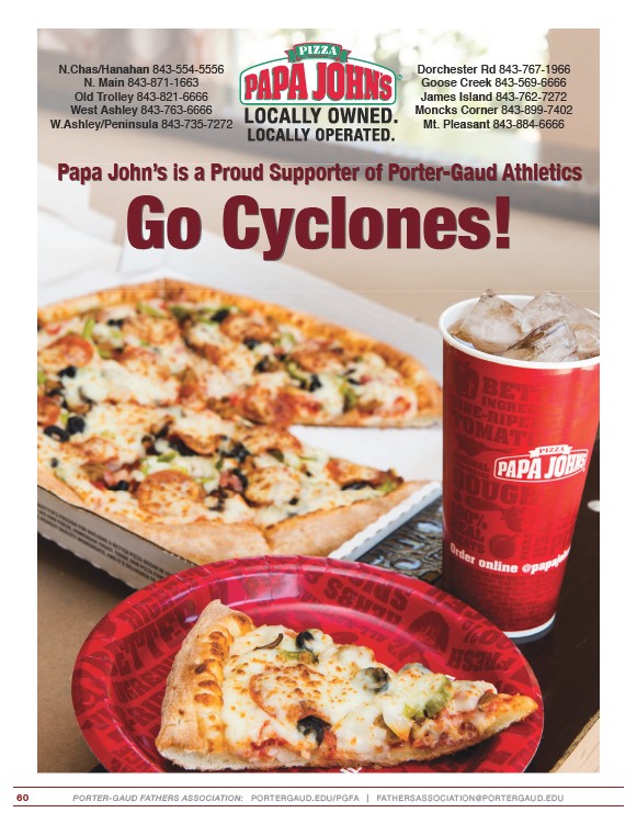 Papa John’s is a Proud Supporter of Porter-Gaud Athletics Go Cyclones!