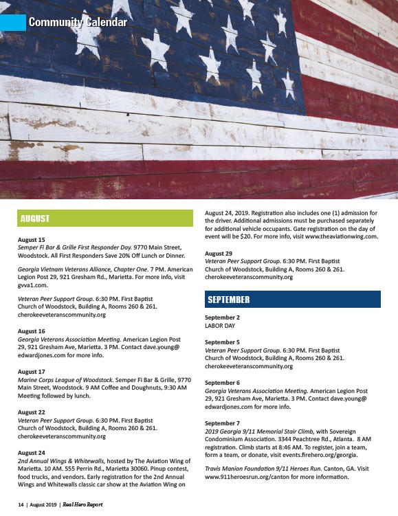 Community Calendar 14 | August 2019 | Real Hero Report AUGUST SEPTEMBER