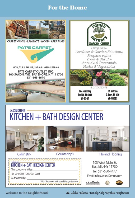 For the Home Welcome to the Neighborhood 22 Oakdale • Bohemia • East Islip • Islip • Bay Shore • Brightwaters