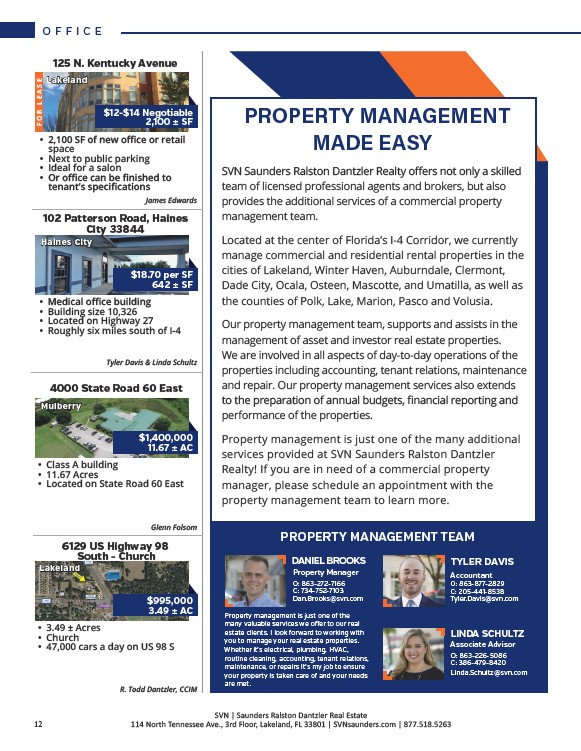 12 114 114 North North Tennessee Tennessee Ave.,Ave., 3rd 3rd Floor,Floor, Lakeland, Lakeland, FL 33801 FL 33801 | SRDCommercial.| SVNsaunders.com | 877.518.5263