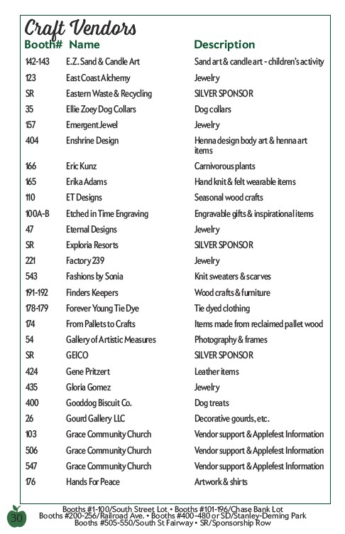 Booths #200-256/Railroad Ave. • Booths #400-480 or SD/Stanley-Deming Park