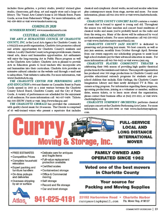 visitors. Locally Charlotte County arts groups provide music, theater,
