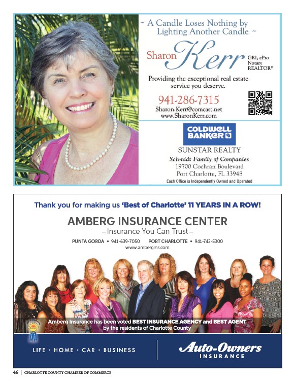 AMBERG INSURANCE CENTER –Insurance You Can Trust– PUNTA GORDA • 941-639-7050 PORT CHARLOTTE • 941-743-5300 46 | CHARLOTTE COUNTY CHAMBER OF COMMERCE www.ambergins.com