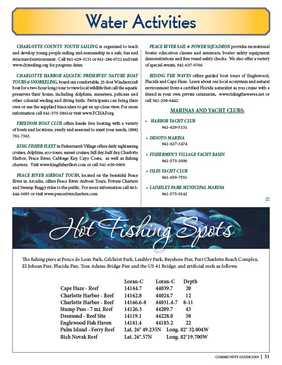 Harbor, Peace River, Cabbage Key, Cayo Costa, as well as fishing
