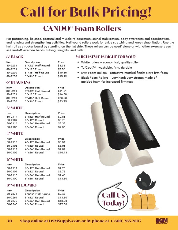 and ranging and strengthening activities. Half-round rollers work for ankle stretching and knee rehabilitation. Use the