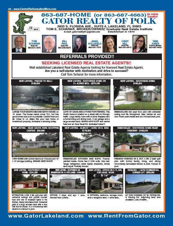 E-mail: gatorrealty01@gmail.com Established in 1974