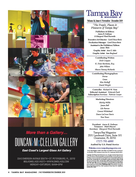 4 TAMPA BAY MAGAZINE | NOVEMBER/DECEMBER 2019