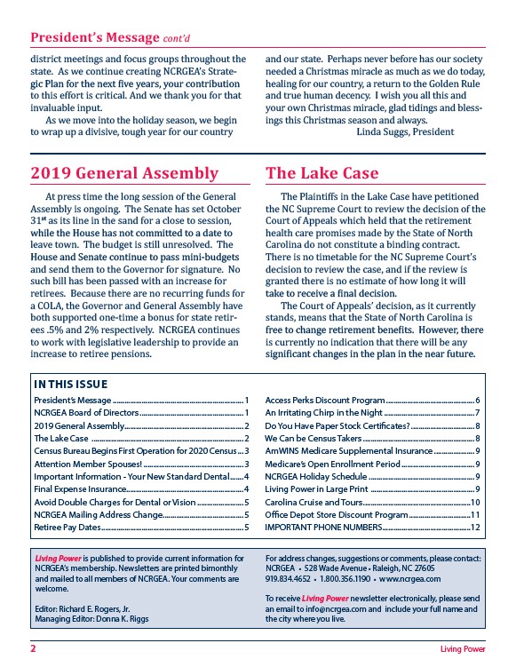 NCRGEA’s membership. Newsletters are printed bimonthly
