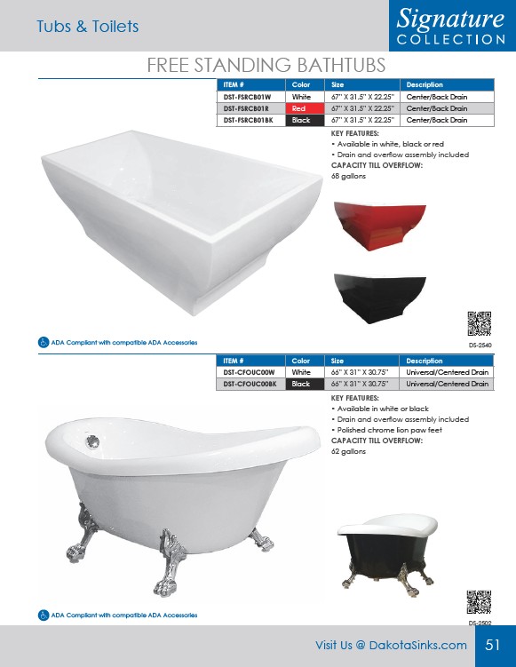 DST-FSRCB01W White 67” X 31.5” X 22.25” Center/Back Drain