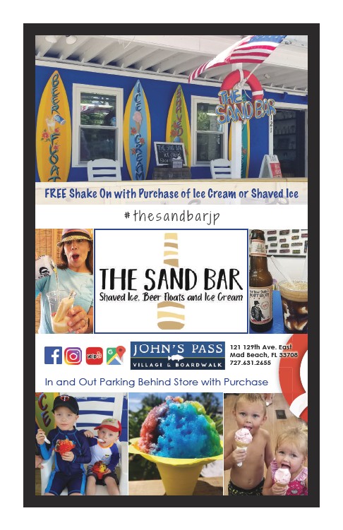 FREE Shake On with Purchase of Ice Cream or Shaved Ice 121 129th Ave. East Mad Beach, FL 33708 727.631.2655 # t h e s a n d b a rj p In and Out Parking Behind Store with Purchase