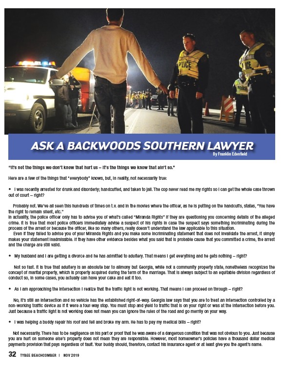 In actuality, the police officer only has to advise you of what’s called “Miranda Rights” if they are questioning you concerning details of the alleged