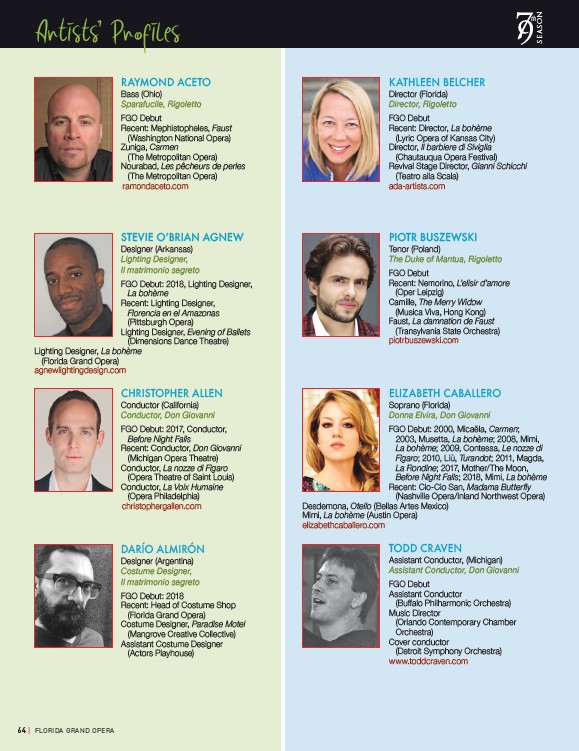 Figaro; 2010, Liù, Turandot; 2011, Magda,