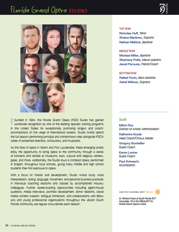 Founded in 1984, the Florida Grand Opera (FGO) Studio has gained