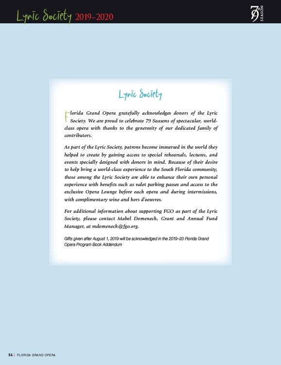 Florida Grand Opera gratefully acknowledges donors of the Lyric