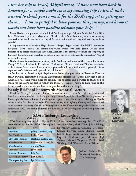 much for the ZOA’s support in getting me there. . . .I am so grateful to have gone on this