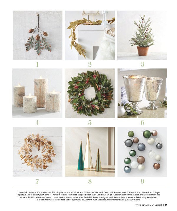 Topiary; $39.50; potterybarn.com 4. Premium Flicker Flameless Sugared Birch Wax Candles; $64-$84; potterybarn.com 5. Seeds and Berries Magnolia