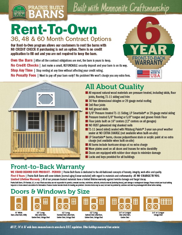 Our Rent-to-Own program allows our customers to rent the barns with