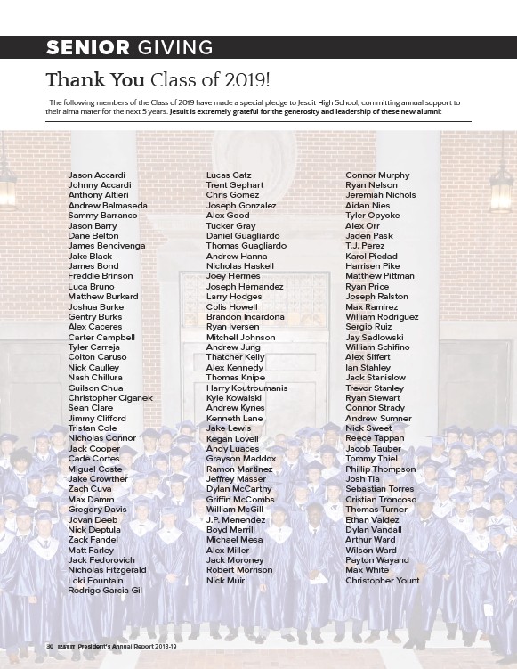 The following members of the Class of 2019 have made a special pledge to Jesuit High School, committing annual support to