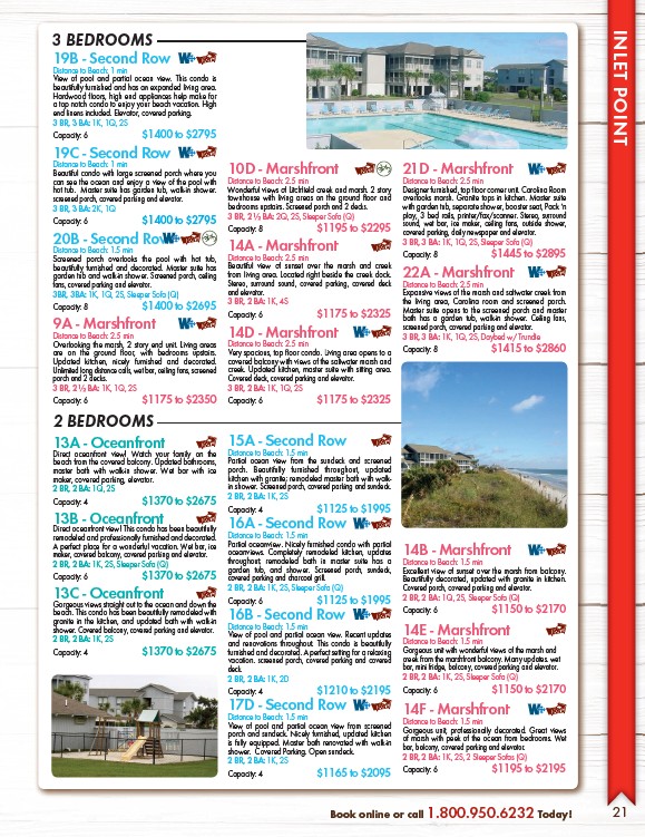 2 BR, 2 BA: 1K, 2S, 2 Sleeper Sofas (Q)