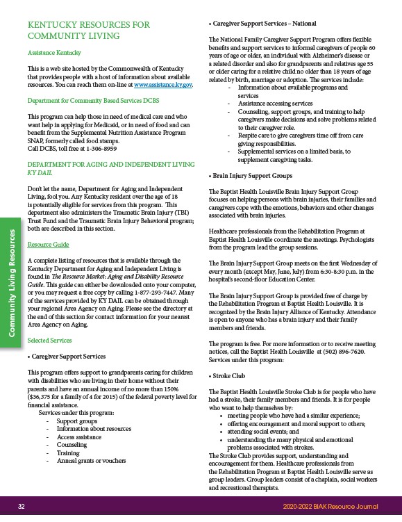recognized by the Brain Injury Alliance of Kentucky. Attendance