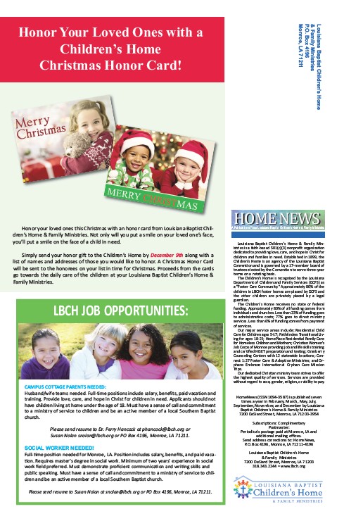 A Publication of Your Louisiana Baptist Children’s Home & Family Ministries