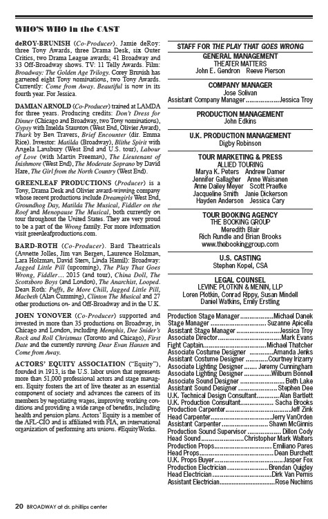 STAFF FOR THE PLAY THAT GOES WRONG