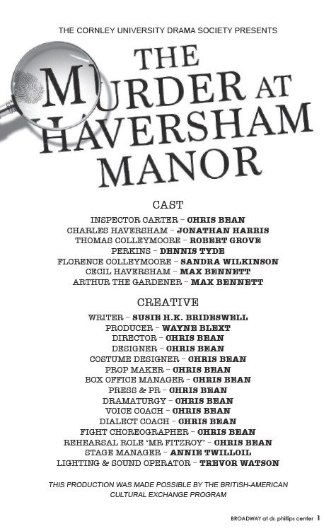 THE CORNLEY UNIVERSITY DRAMA SOCIETY PRESENTS