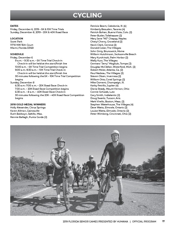 2019 FLORIDA SENIOR GAMES PRESENTED BY HUMANA | OFFICIAL PROGRAM 17