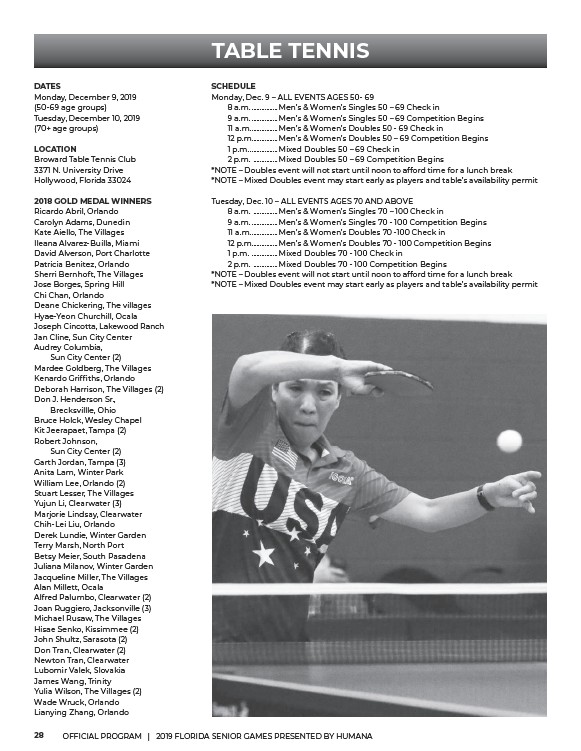 28 OFFICIAL PROGRAM | 2019 FLORIDA SENIOR GAMES PRESENTED BY HUMANA