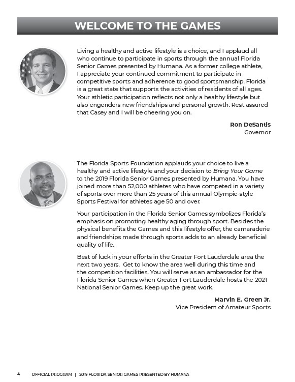 4 OFFICIAL PROGRAM | 2019 FLORIDA SENIOR GAMES PRESENTED BY HUMANA