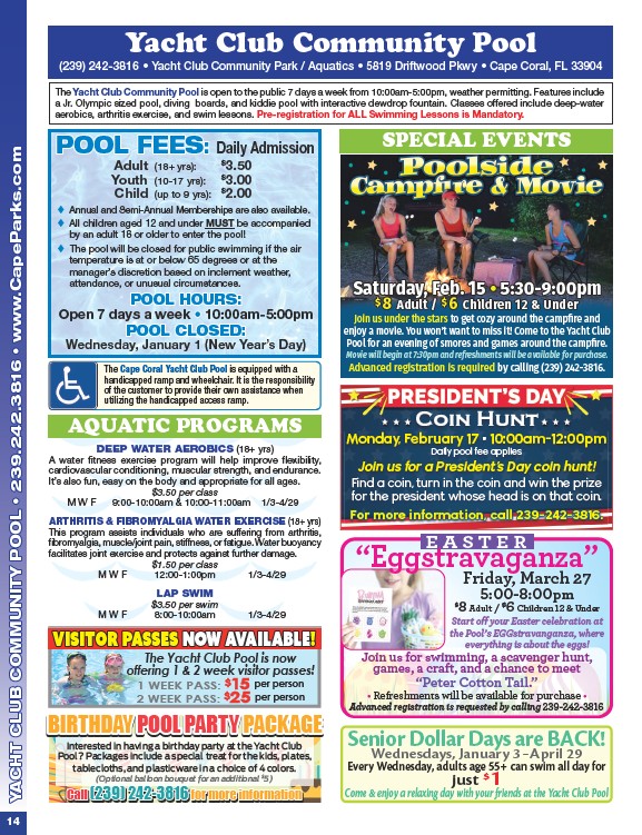14 YACHT CLUB COMMUNITY POOL • 239.242.3816 • www.CapeParks.com
