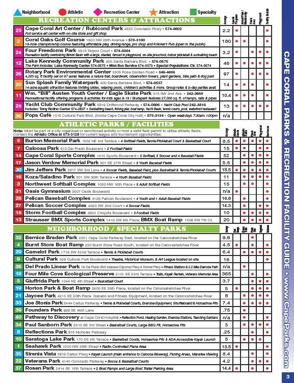 CAPE CORAL PARKS & RECREATION FACILITY GUIDE • www.CapeParks.com