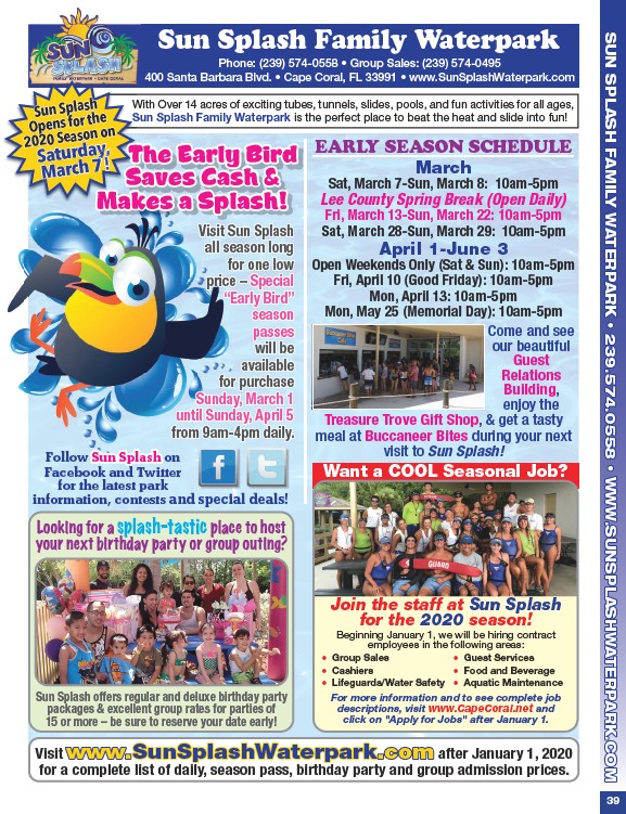400 Santa Barbara Blvd. • Cape Coral, FL 33991 • www.SunSplashWaterpark.com
