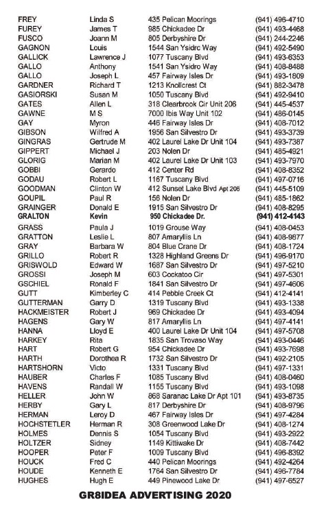 GRALTON Kevin 950 Chickadee Dr. (941) 412-4143 GR8IDEA ADVERTISING 2020