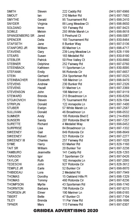 STAVENS Gary 239 Long Meadow Ln (941) 828-1199