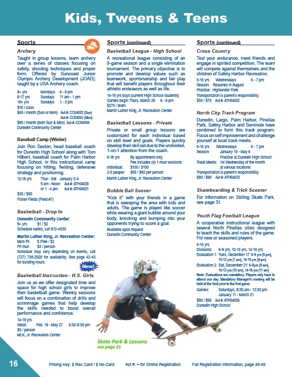 16 Pricing Key: $ Rec Card / $ No Card Act #: = for Online Registration Full Registration Information, page 48-49