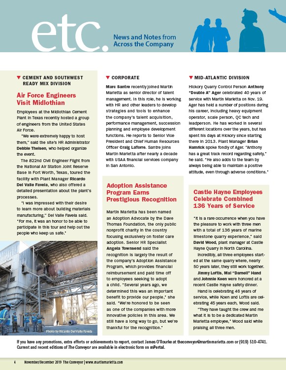 4 November/December 2019 The Conveyor | www.martinmarietta.com