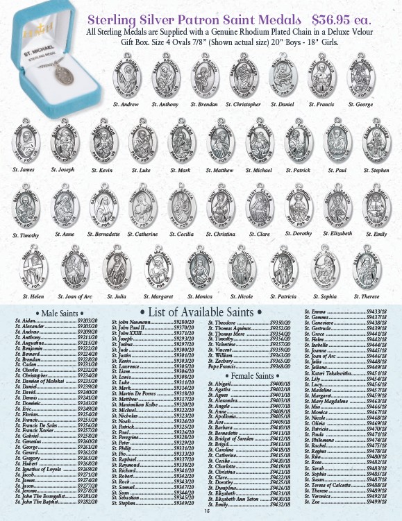 Sterling Silver Patron Saint Medals $36.95 ea.