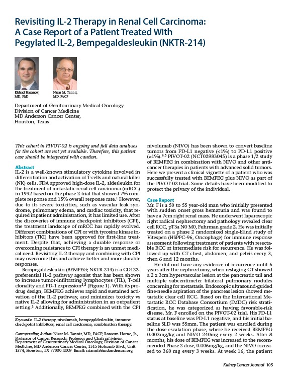 Keywords: IL-2 therapy, nivolumab, bempegaldesleukin, immune