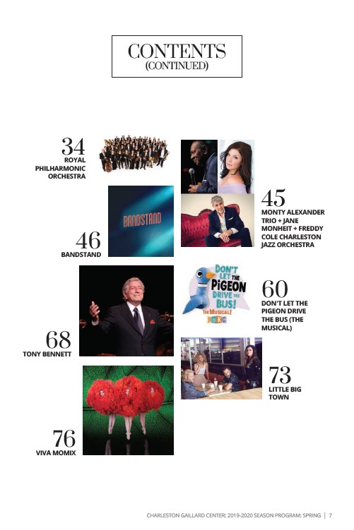 76 VIVA MOMIX 45 MONTY ALEXANDER TRIO + JANE MONHEIT + FREDDY COLE CHARLESTON 46 JAZZ ORCHESTRA BANDSTAND 73 LITTLE BIG TOWN 34 ROYAL PHILHARMONIC ORCHESTRA 60 DON'T LET THE PIGEON DRIVE THE BUS (THE MUSICAL) 68 TONY BENNETT CONTENTS (CONTINUED) |