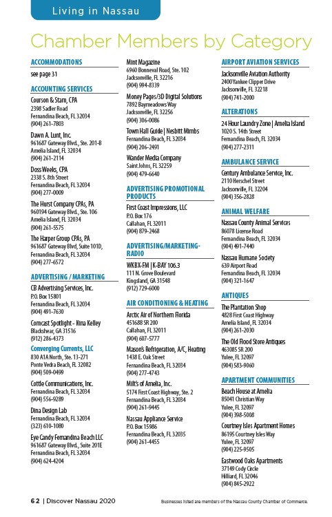 62 | Discover Nassau 2020 Businesses listed are members of the Nassau County Chamber of Commerce.