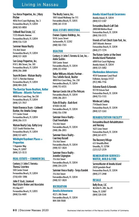 80 | Discover Nassau 2020 Businesses listed are members of the Nassau County Chamber of Commerce.