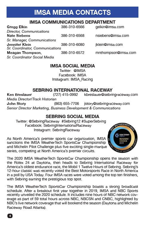 Ken Breslauer (727) 415-0992 kbreslauer@sebringraceway.com