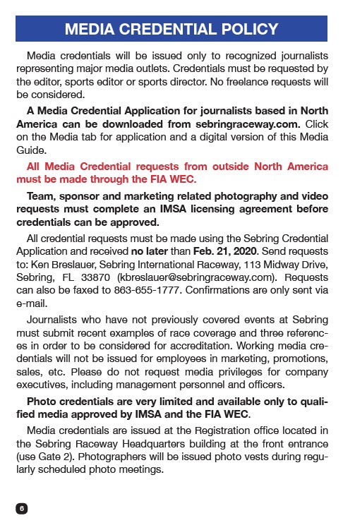Sebring, FL 33870 (kbreslauer@sebringraceway.com). Requests