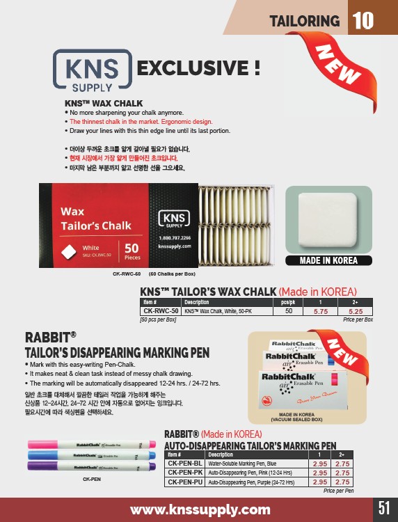KNS™ TAILOR’S WAX CHALK (Made in KOREA)