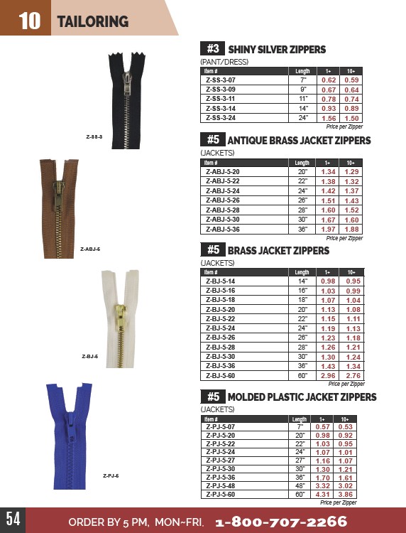 #5 MOLDED PLASTIC JACKET ZIPPERS