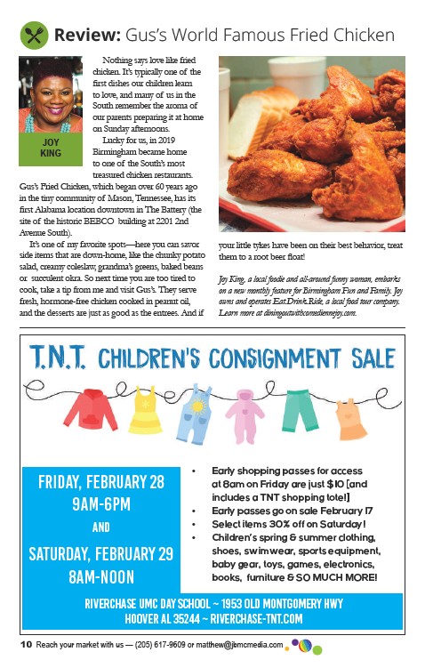 10 Reach your market with us — (205) 617-9609 or matthew@jbmcmedia.com
