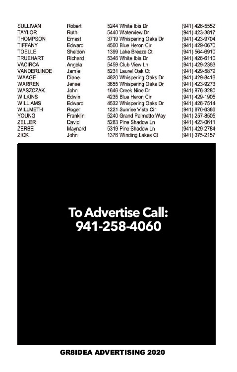 ADVERTISE TODAY! To Advertise Call: 941-258-4060 ADVERTISE TODAY! Email: Gr8idea@comcast.net Email: Gr8idea@comcast.net GR8IDEA ADVERTISING 2020