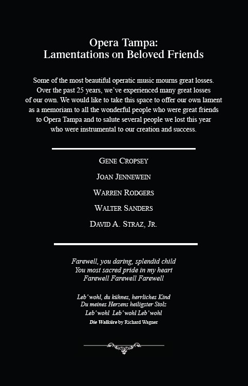 to Opera Tampa and to salute several people we lost this year