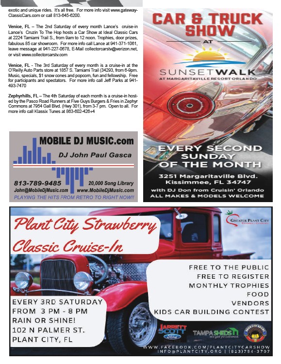 Zephyrhills, FL – The 4th Saturday of each month is a cruise-in hosted